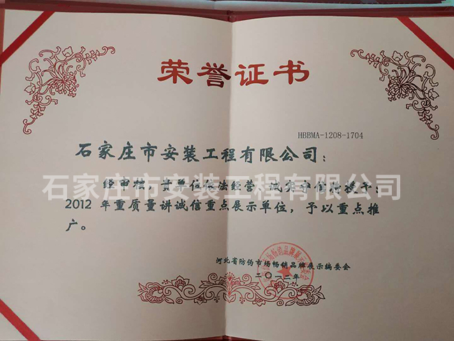 2012年重質(zhì)量講誠信重點展示單位
